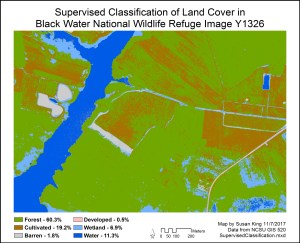 Application and Reflection: Image classification is a very useful technique that can be applied to a variety of land management and stewardship goals. When you have some familiarity with the area, and can thus select training sites of known land cover types, Supervised Classification is an appropriate technique to use.