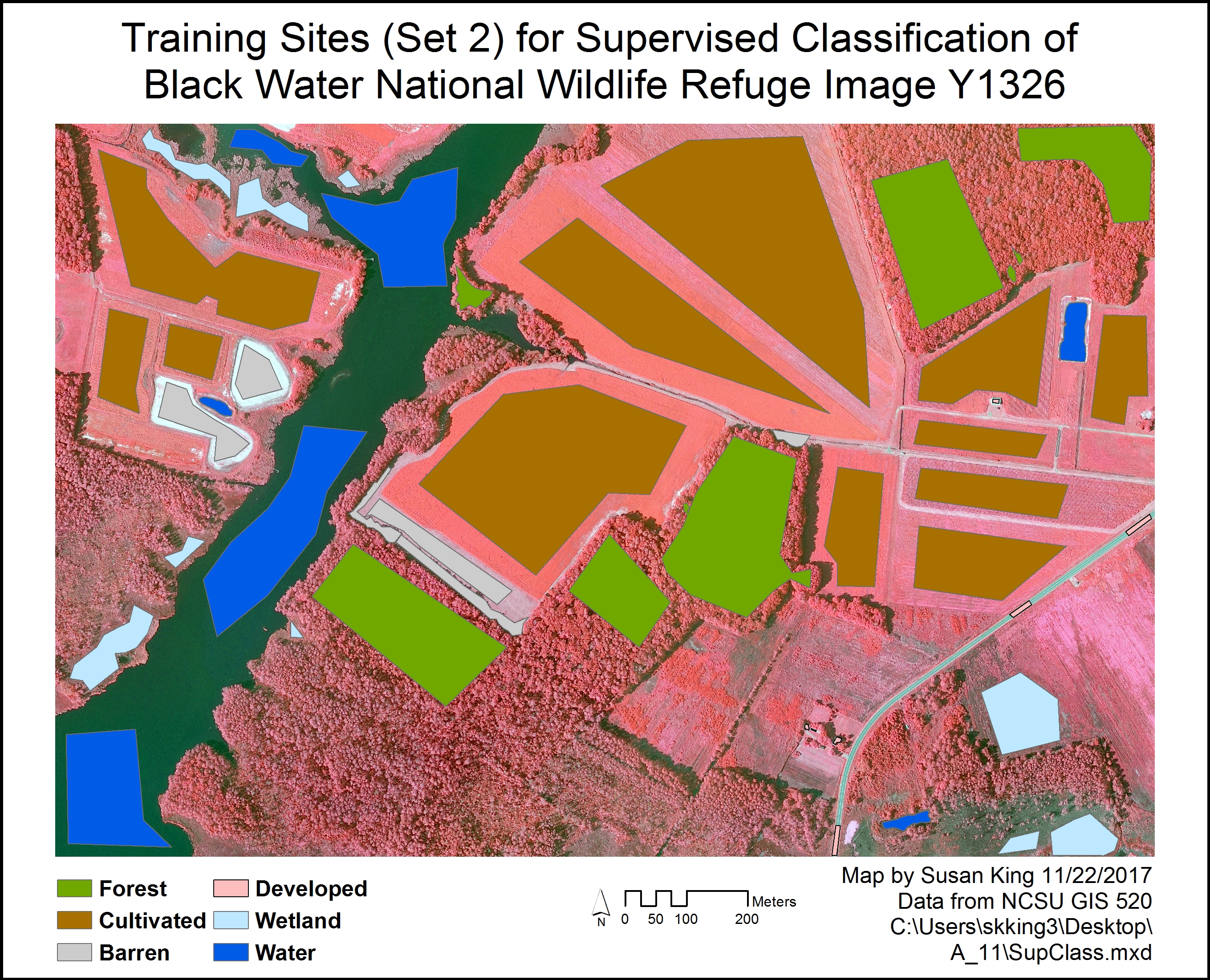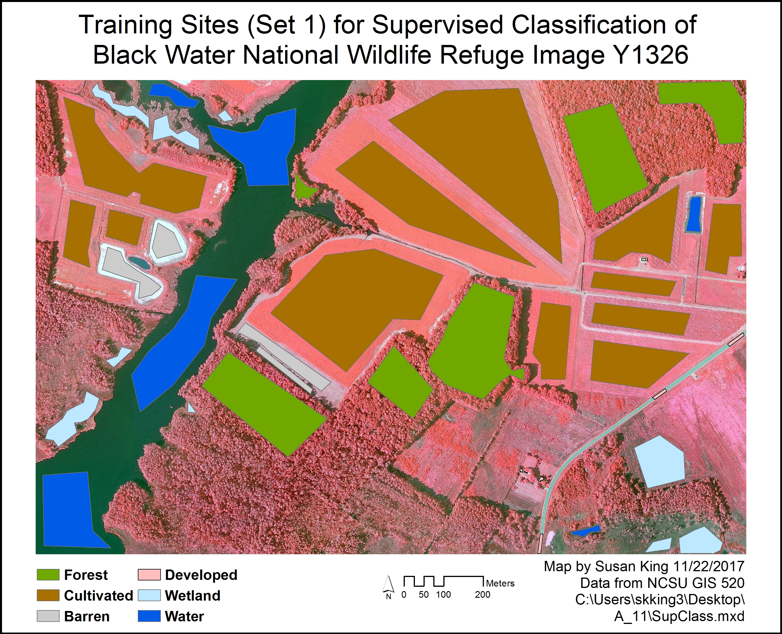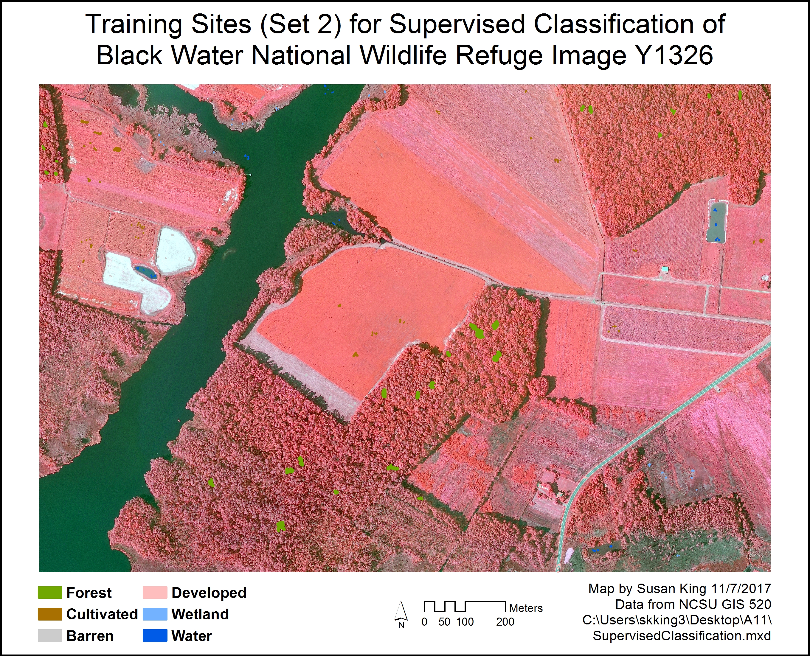 Application and Reflection: Image classification is a very useful technique that can be applied to a variety of land management and stewardship goals. When you have some familiarity with the area, and can thus select training sites of known land cover types, Supervised Classification is an appropriate technique to use.